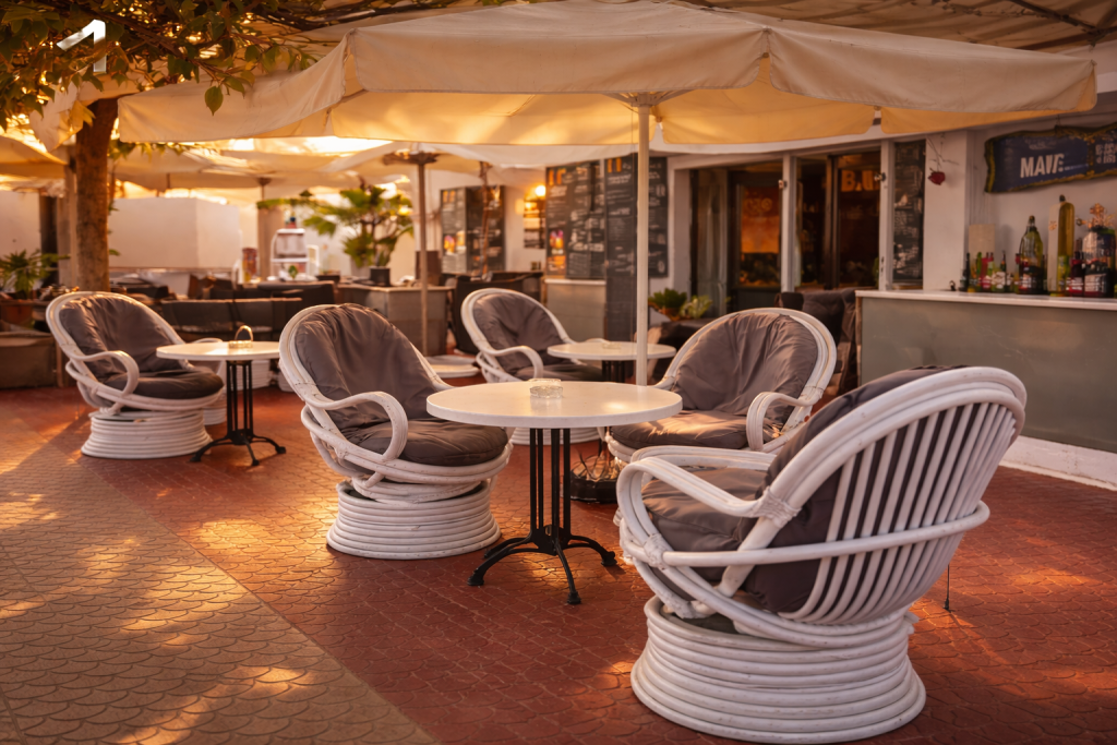 Disfruta de cócteles, cenas al aire libre y un ambiente relajado al atardecer. Nuestra terraza lounge es perfecta para terminar el día en Menorca con buena compañía y mejor ambiente.