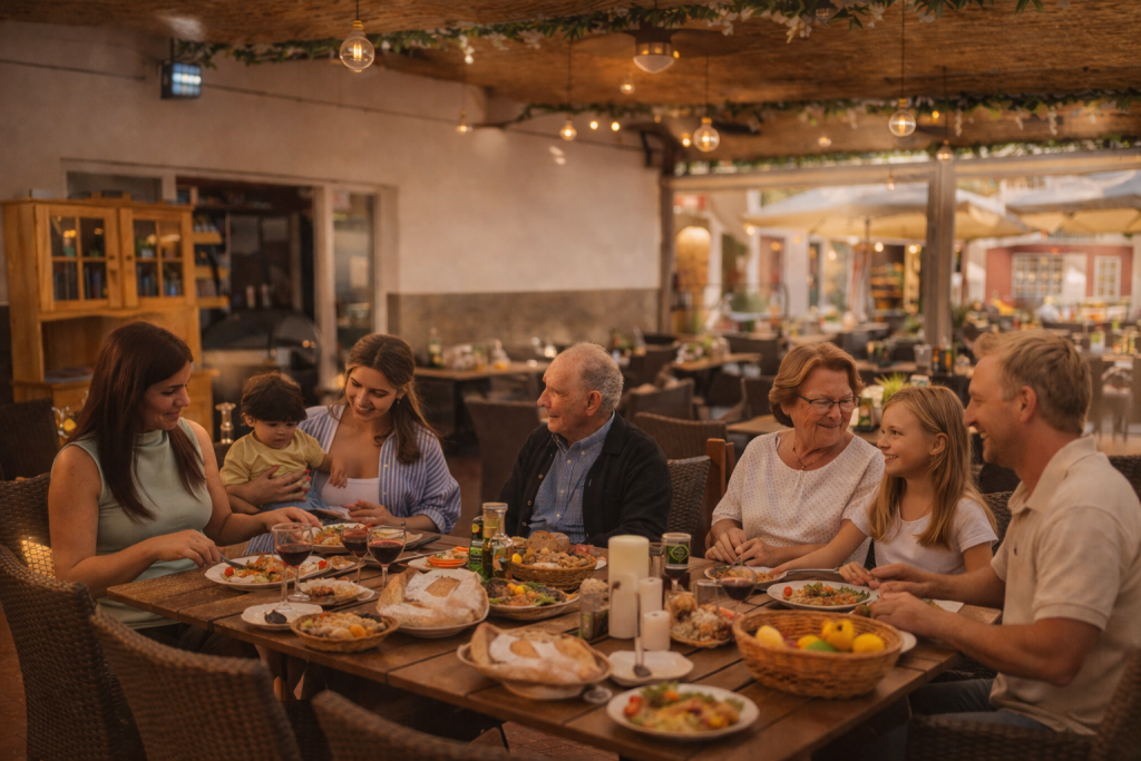 Ambiente cercano, cocina mediterránea y una terraza cómoda para disfrutar en familia en Cala Blanca.